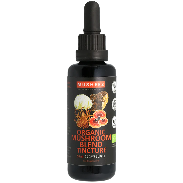 MUSHEEZ 50ml certified organic mushroom blend tincture. Made in Estonia.